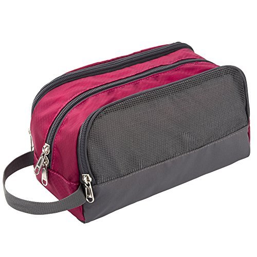 All the three compartments have zippers, the mesh pocket on the one side is visible and breathable; The convenient strap on the one end is perfect for hanging.